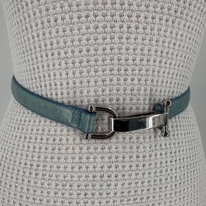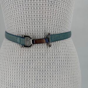 #VintageBelt #Y2KFashion #ItalianLeather #SilverHardware #EquestrianStyle #MinimalistStyle #ClassicChic #RetroAccessories #90sStyle #Early2000s #TealBelt #StatementBelt #TimelessFashion #VintageFind #SustainableStyle