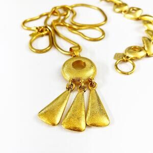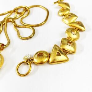 Vintage Anne Klein Geometric Brushed Gold Necklace & Bracelet Set