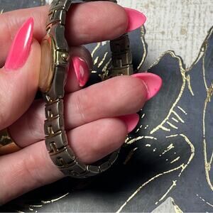 Welcome to the Bohemian Maven and thank you to both my new and long time customers for the ongoing support of my small business! You make it possible for me to continue hunting daily for unique treasures for you.Elegant Anne Klein watch with a gold and silver design. Features a classic round face with Roman numerals. Needs a new battery.
