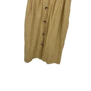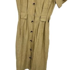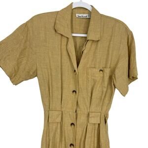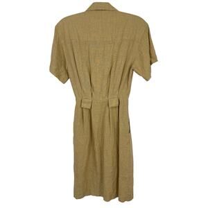 Vintage Anne Klein II Linen Shirt Dress Women size 4 Midi Short Sleeve Gold tan