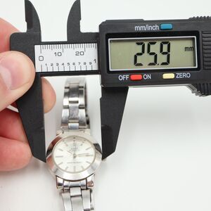 Pre-owned but in great condition! The band is in good condition with average wear AND WAS SHORTENED BY THE PREVIOUS OWNER, PLEASE see picture #4 for the measurement. The crystal is also in good condition. The watch is currently running smooth and keeping accurate time. Battery was replaced (9/30/24), but we still can NOT guarantee battery life due to various reasons such as unknown shelf time. However we will check the watch before shipping to ensure it is working!