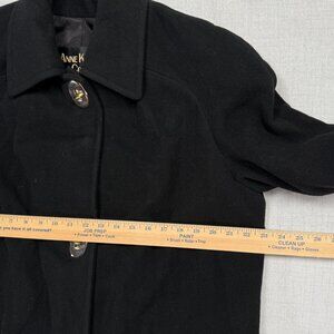 Vintage Anne Klein II Wool Coat Black Button Front Mid Length Chest Size 46"