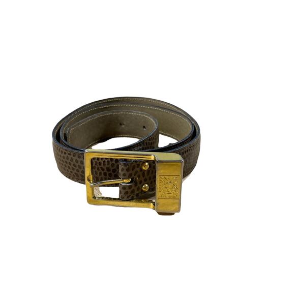 Vintage Anne Klein Leather Embossed Brown Belt Gold Lion Head Logo Size S