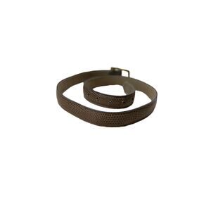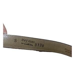 Light brown embossed belt with gold tone buckle showing the lion's head Anne Klein logo. Smoke free home.