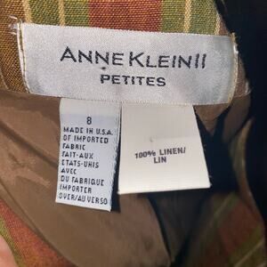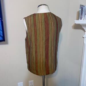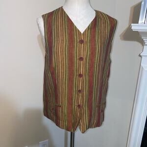 Vintage Anne Klein Linen Striped Sleeveless Button Front Vest Size 8 Petite