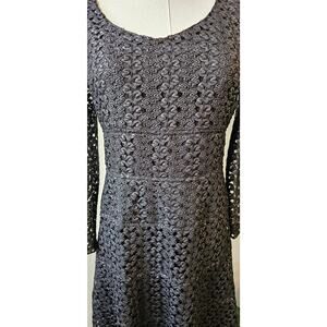 Vintage Anne Klein Metallic Lace Cocktail Mini Dress Women Size 4 Black Shimmery