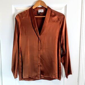 Luxurious pure silk charmeuse blouse from Anne Klein in a rich cinnamon brown.