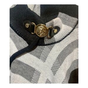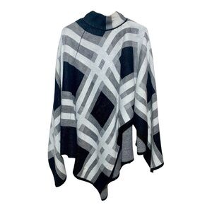 Chic poncho with a black and white plaid design. Features a unique button closure.