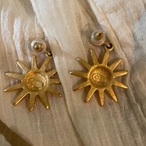 Vintage Anne Klein Sun Face Gold Dangle Earring 90s