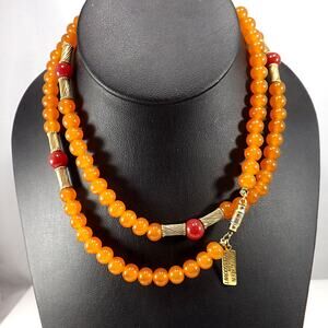 Vintage Anne Klein for Accessocraft Necklace Beaded Early 1970s Art Glass