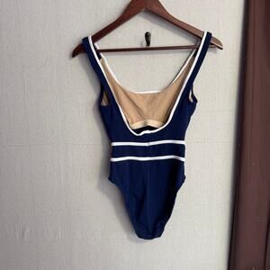 Vintage Anne Klein for Sirena Swimsuit Size 10 Navy Blue One Piece Retro Style