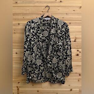 Vintage Anne Klein Size XLarge Silk Oversized Filigree Pattern Boyfriend Blazer