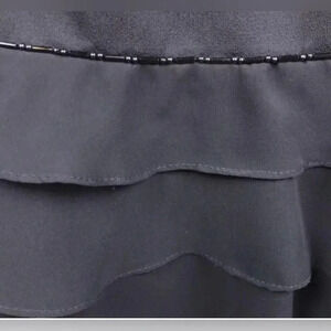 Beading along neckline, low back, and above bottom skirt ruffles.