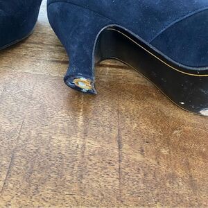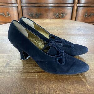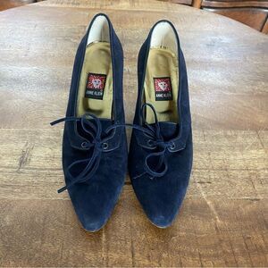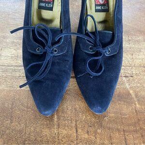 Fabulous pair of vintage suede Oxford pumps, made in Italy for Anne Klein. Excellent condition all around with the exception of the heel caps which need to be replaced.