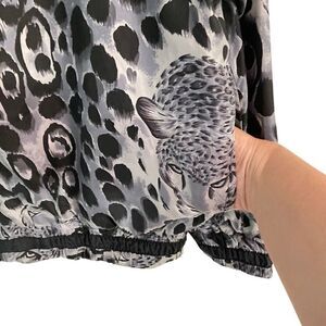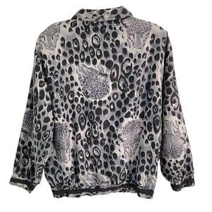 Vintage Anney leopard animal print jacket M 100% silk black & gray full zip