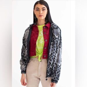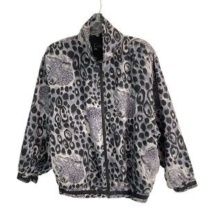 Vintage Anney leopard animal print jacket 100% silk black & gray full zip