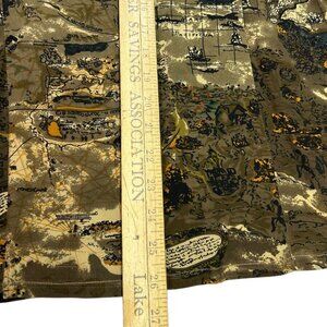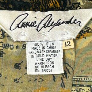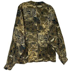Vintage Annie Alexander Green Silk Button-Up Shirt w/Map Design Women's Size 12