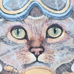 Vintage Stupell Industries Annie Rhinehart Pilot Cat Wooden Coat Hanger Rare