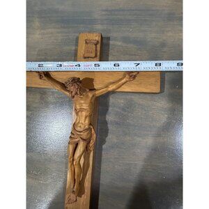 Vintage Anri Italy Hand Carved Wood Cross Crucifix Jesus Original Sticker 13"