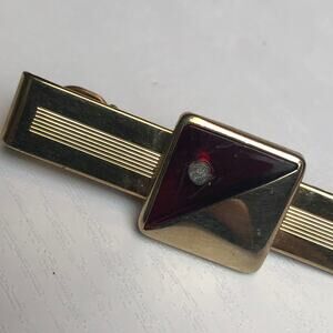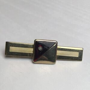 Vintage Mens Anson Gold Tone Square Neck Tie Clip, please see images for condition. Shows some scratches and wear. Seems to be missing faux rhinestone.