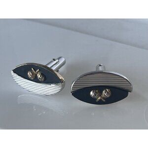 Vintage Anson Maracas Cufflinks Two Tone Silver Plated MCM Mens Jewelry
