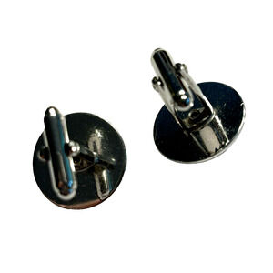 Vintage Anson Sterling Silver Cufflinks Brushed Discs with Blue Center Stones