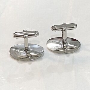 Vintage Anson Sterling cufflinks silver tone ovals etched conservative career