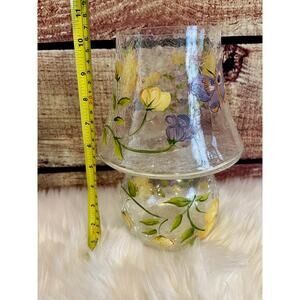 Vintage Anthropologie Floral Butterfly Hand Painted Painted Glass Lamp Vase Candle Holder EUC