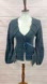 Vintage Anthropologie Lagenlook Artsy Asymmetrical Peplum Cardigan Sweater. Victorian steampunk vibes. This cardigan has so many unique features. Hidden snap front closure with snap peplum flaps, cut out at the back, and an asymmetrical slit cut balloon sleeve. Snap design at back collar. It is a soft slate denim like blue knit with a medium weight. There are some loose strings but overall is in good condition. Size Small.