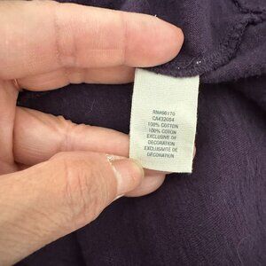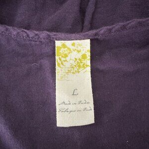 This vintage Anthropologie blouse features a scoop neck, floral embroidery, and pintuck details. The breathable cotton fabric and cap sleeves provide comfort and style. Perfect for any casual outing. Very good used condition. Gold pintuck over an eggplant color with multicolor floral embroidered. Very good used condition.