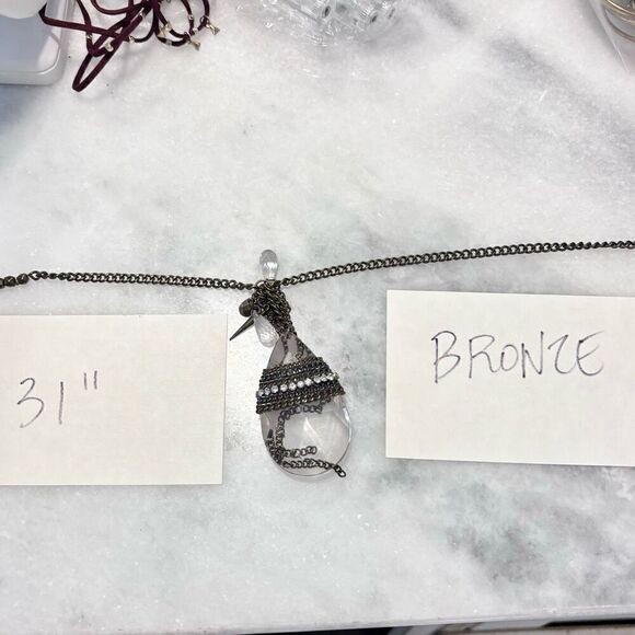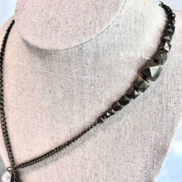 Vintage Anthropologie Multifaceted Teardrop Crystal Pendant With Curb & Rockstud Chain Link Necklace Bronze 31"