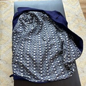 Excellent preowned condition. Deep purple shade. Size tag says Large but looks like a medium possibly small by my measurements. Depends how oversized or fitted wanted. Please go by measurements laying flat in pictures provided. Please see all eleven photos provided. Thank you for looking.
