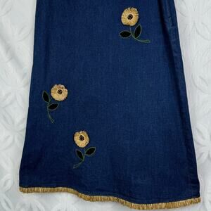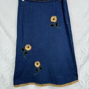 Vintage Anthropologie Y2k Hippie Floral Straw Hem Denim Midi Skirt Size 12
