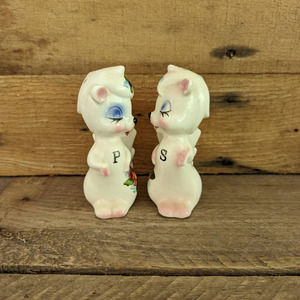 Vintage Anthropomorphic White Squirrel Magnetic Salt & Pepper Shakers by Enesco