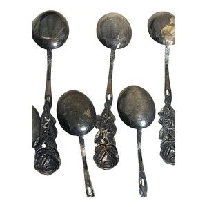 Vintage Antiko 100 Silver Bon-Bon Coffee Spoon Rose Handle 11 Piece Set Germany. CHOOSE FAIR FOR CONDITION DUE TO VINTAGE CONDITION!!