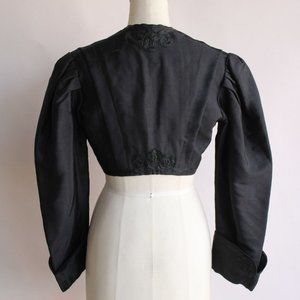 Vintage Antique 1800s Womens Victorian Jacket, Large Size Black Silk Edwardian