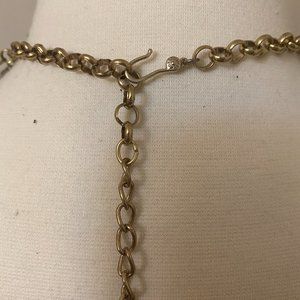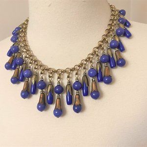 Vintage Antique Brass & Blue Glass & Rhinestone Dangle Necklace