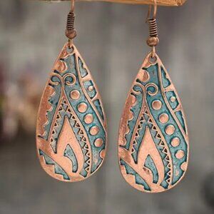 Vintage Antique Bronze Finish Bohemian Chic Dangle Earrings