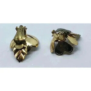 Vintage Antique Brooch Clip Earrings Flower Germany Sugar Coated.