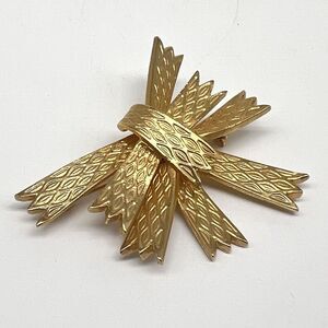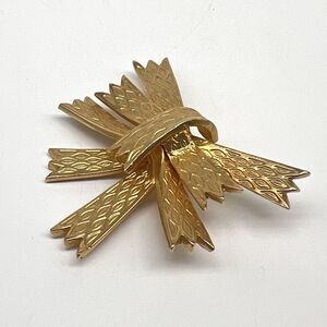 VTG Antique Capri Signed Gold-Tone Brooch Pin Bow Ribbon 2.25" Textured Metal.