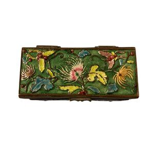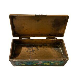 Vintage Antique Chinese Cloisonne Enamel Brass Floral Mini Stamp Trinket Box