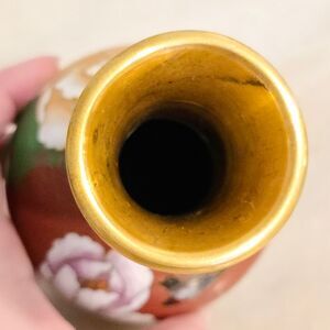 Vintage Antique Chinese Cloisonne Enamel on Brass Red Brick Color Vase Bird and Flowers Theme.
