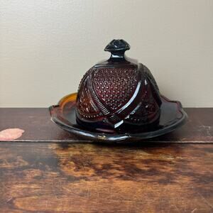 Vintage Antique? Depression Pressed Red Cadmium Glass Covered Butter Dish GLOWS
