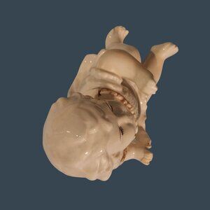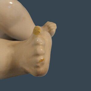 This German Porcelain Piano Baby is a unique treasure. With realistic glass eyes and detailed craftsmanship, it's a standout piece for any collector or enthusiast of vintage porcelain.