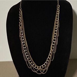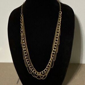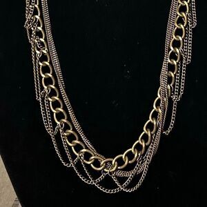 Vintage Long Necklace Women's OS Antique Gold Metal Drape Layered Multi-Chain Festoon