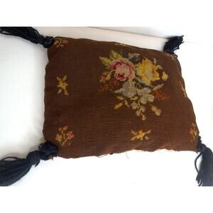 Vintage Antique Needlepoint Petit Point Floral Pillow READ