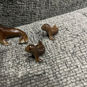 Vintage Antique Porcelain Ceramic Small Seal Mother Baby Set Animals