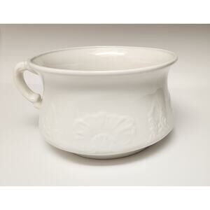 Vintage Antique Semi Porcelain White Chamber Pot W/ Handle German 10.5"