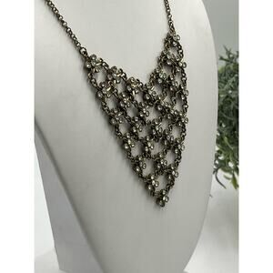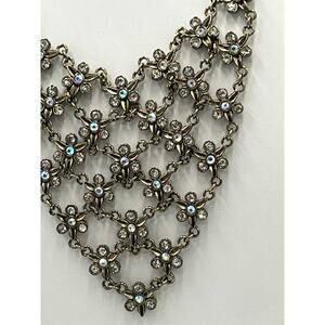 vintage bib necklace, featuring a mesh-like design with small, flower-shaped elements connected by links.