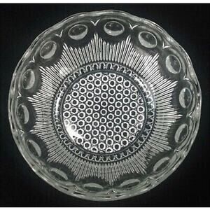 Vintage, Antique US Glass Co., Manhatten,1900s, Small Round Berry Bowls (2). Beautiful berry bowls feature scalloped edges, circular pattern around bowls, bottom has a nobbed cut, measure 4.5" across, 1.75" tall. Hand wash only, not for microwave use. Excellent condition no cracks, chips, or breaks. No wear seen. Comes from a smoke free, pet free home.